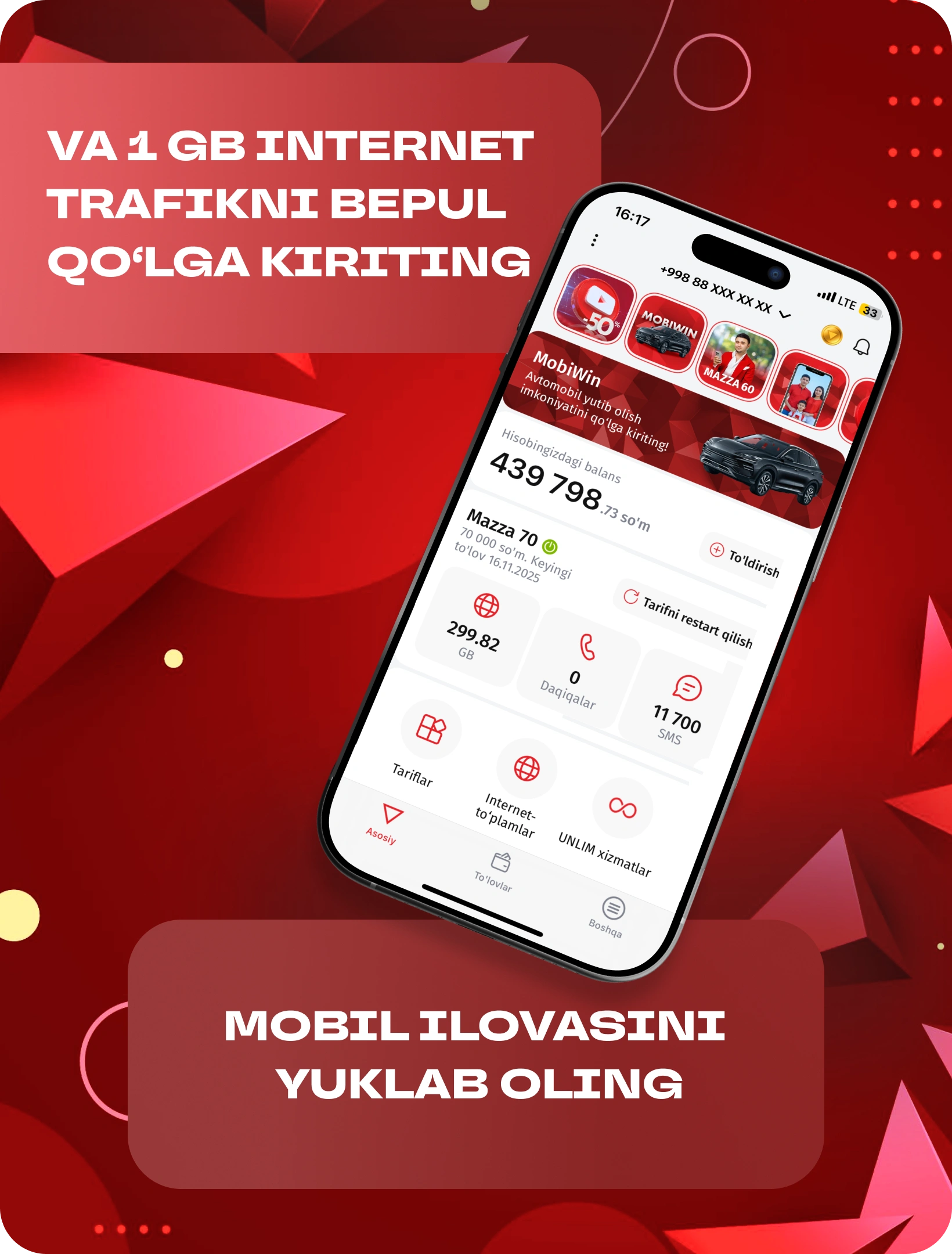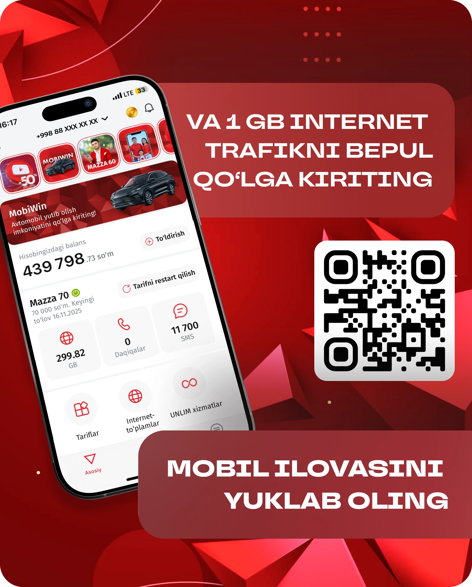 USSD-so‘rov: telefonda *100# tering va chaqiruv tugmasini bosing (so‘rov bepul);